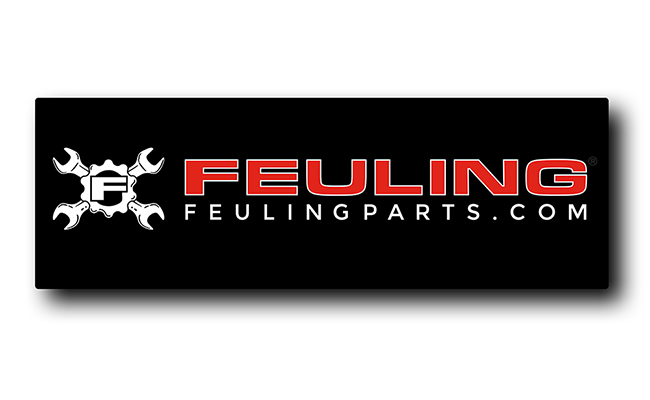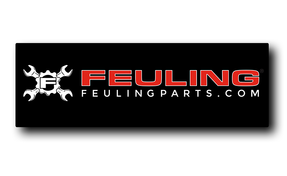 • Black high quality cloth banner with FEULING corporate logo featuring loops at corners for easy mounting