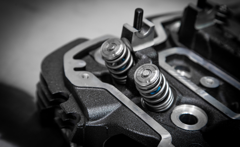 Kits include: FEULING ENDURACE BEEHIVE valve springs, machined spring seats, seat shims, valve locks and a set of premium Viton valve seals equipped with a spring loaded valve stem wiper system. THIS KIT USES THE FACTORY STOCK STEEL RETAINERS, if Ti retainers are desired see spring kit #1108 or Ti retainer kit #1109