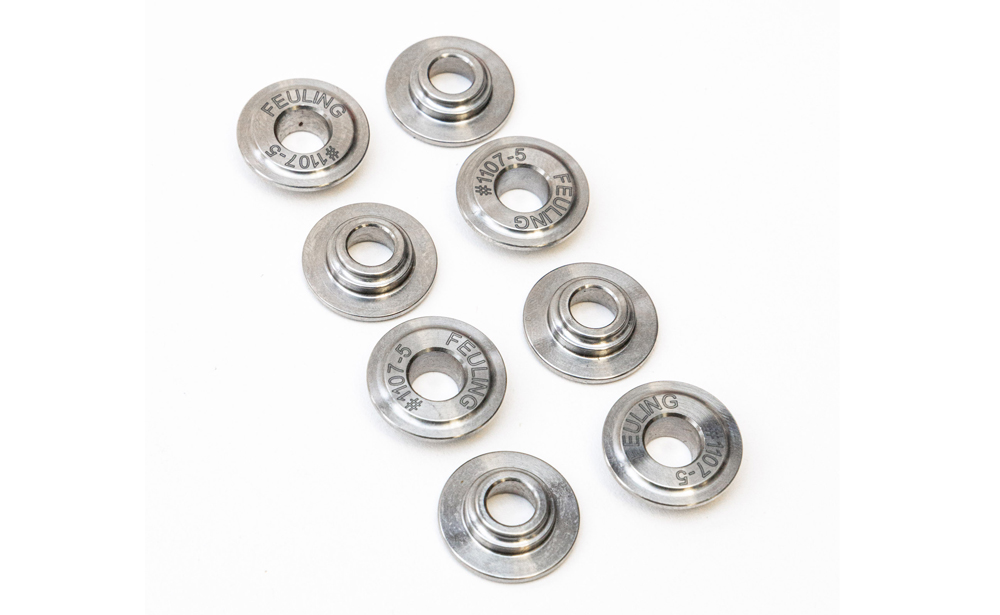 Ti retainers fit Feuling Beehive Valvespring spring kit #1107 and or the factory and SE M8 valvesprings, stock height retainers (Qty. 8)