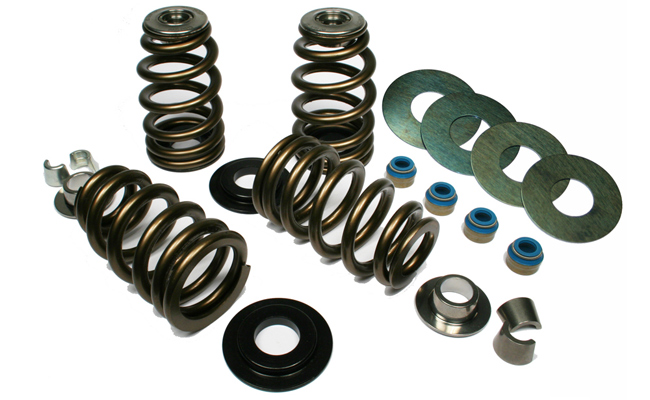 Kits include: FEULING HIGH LOAD BEEHIVE valve springs, lightweight 10 DegreeTitanium retainers manufactured from Ti-17 alloy and micropolished for enhanced fatigue life, machined heat treated chrome moly spring seats, seat shims and valve locks and a set of premium Viton valve seals equipped with a spring loaded valve stem wiper system.