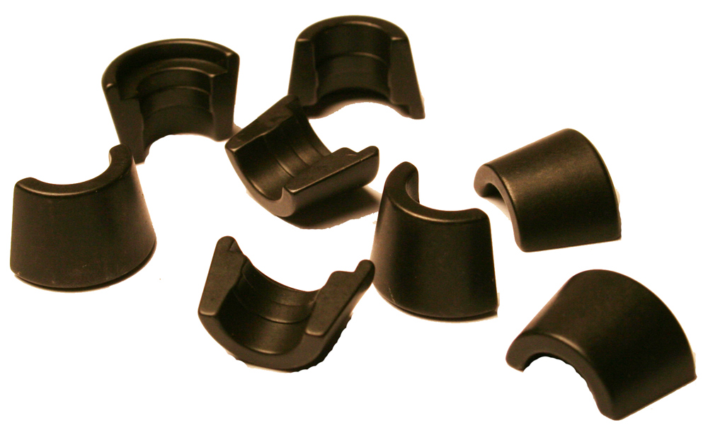 10 degree machined steel locks fit 5/16 valve stems with standard keeper groove. Raises the valve spring retainer to gain 0.050 of installed height without machining the cylinder head spring seat. Used to fit larger lift camshafts without the need to machine cylinderhead spring seats. Will lower valvesping pressure.