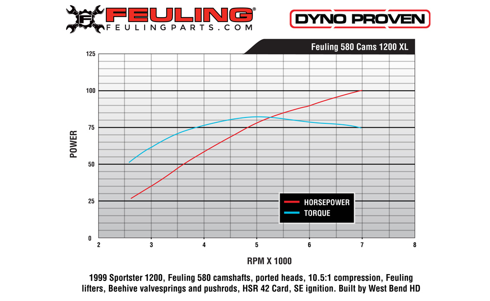 • PART # 1377 580 REAPER high lift cams for XLs are designed for the rider who is looking for more horsepower with a higher RPM power band. Camshafts have .580 lift on both intake and exhaust, require high lift valve springs see FEULING BEEHIVE ENDURANCE or HIGH LOAD valve springs, higher compression recommended with performance pushrods and lifters. High flow intake and performance exhaust required.