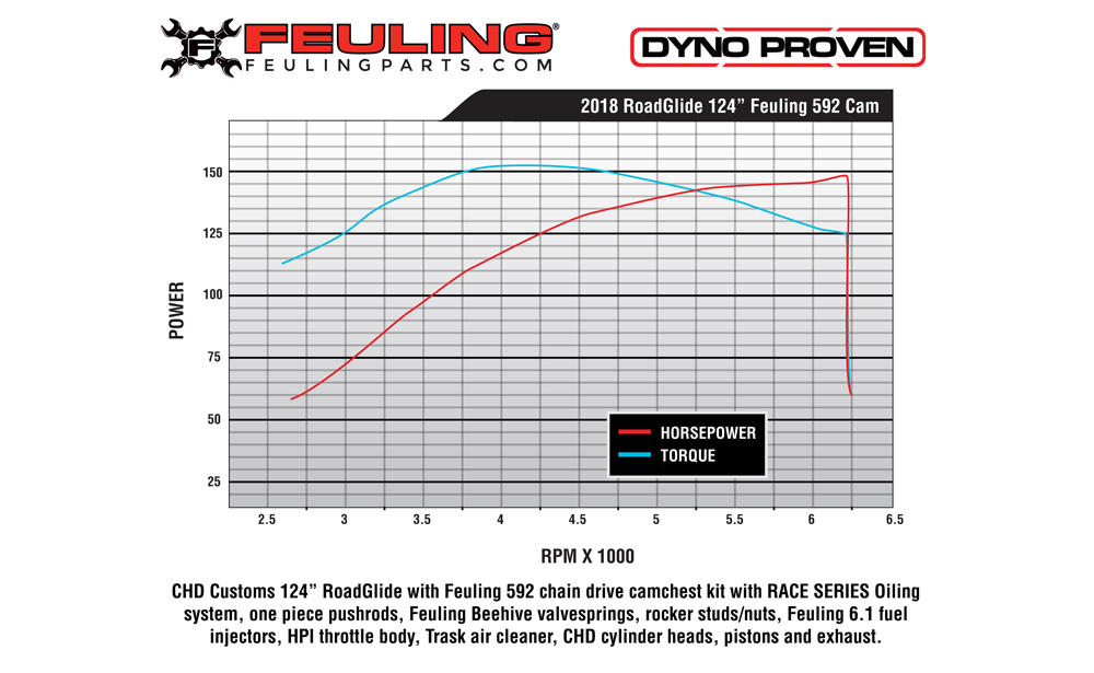 592 CAM - The big nasty Put your big boy pants on get serious with bore size, ported cylinder heads and throttle body. Aggressive camshaft requiring high lift and higher load valvesprings, performance pushrods and lifters. High flow air cleaner and triple stepped exhaust pipe highly recommended. FEULING also recommends matching this cam with our RACE SERIES oiling.