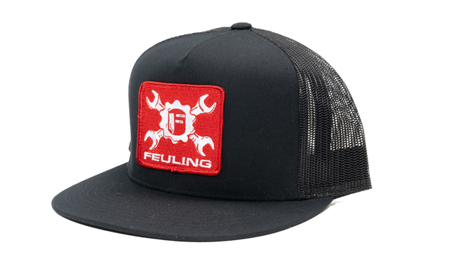Black mesh snapback, red wrench cross patch