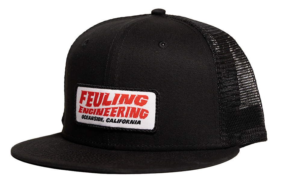 • FEULING Engineering Blk/Red/Wht Patch, Mesh Trucker Snapback Hat, Black