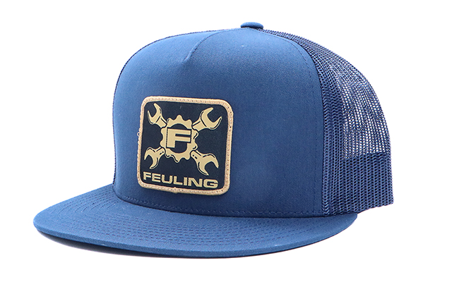 Navy/navy mesh snapback, gold wrench cross patch