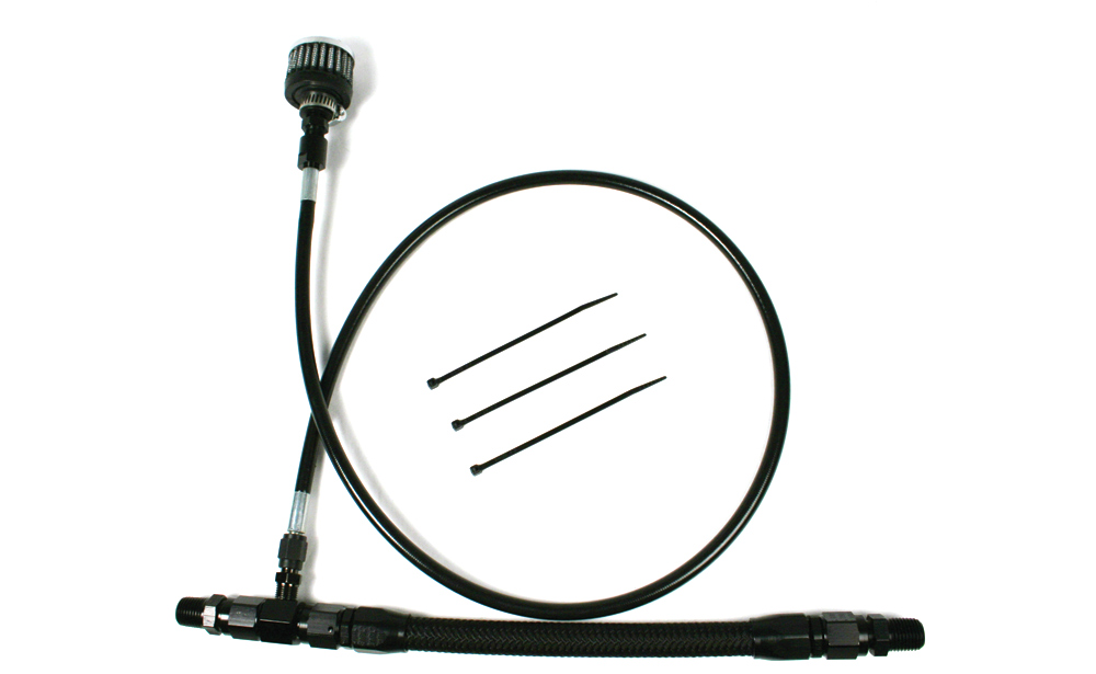 TC FL Bagger models 02-06 Black oil tank breather kit, replace the factory vent line from back of engine to oil filler spout