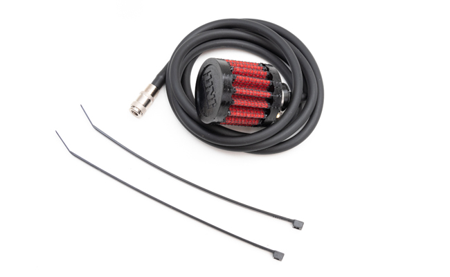 NOTE: Our in house testing shows venting the air cleaner to atmosphere may be problematic resulting in oil carry over/misting out of the breathers. When air filter venting is accompanied with the use of oil tank venting such as the Feuling vented dipstick and or a vented transmission top cover the oil carry over/misting can be increased.