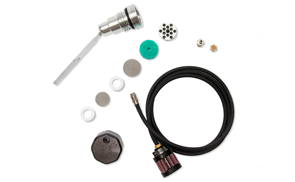 NOTE: Our in house testing shows venting the air cleaner to atmosphere may be problematic resulting in oil carry over/misting out of the breathers. When air filter venting is accompanied with the use of oil tank venting such as the Feuling vented dipstick and or a vented transmission top cover the oil carry over/misting can be increased.