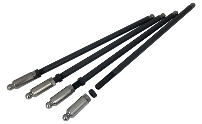 Adjustable pushrods are tapered 3/8 4130 chrome moly adjustable pushrods, use a minimal adjustment parameter eliminating flex and loss of valve train-stability problems associated with most adjustable pushrods.