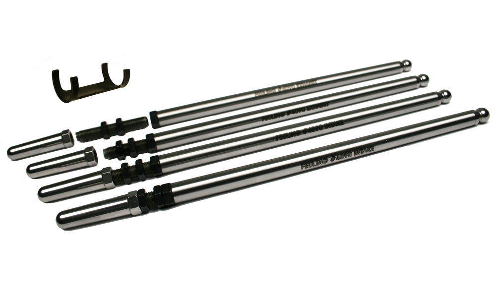• FEULING FAST Install adjustable pushrods are made from the same great design as the regular install FEULING adjustable pushrods but feature a slightly shorter tapered tube and come disassembled allowing the engine builder to install the pushrods without removing the top rocker box. These pushrods feature a dual jam nut locking system and include FEULING part #9012 which is a tool to hold the pushrod tubes up and out of the way while adjusting the pushrods.