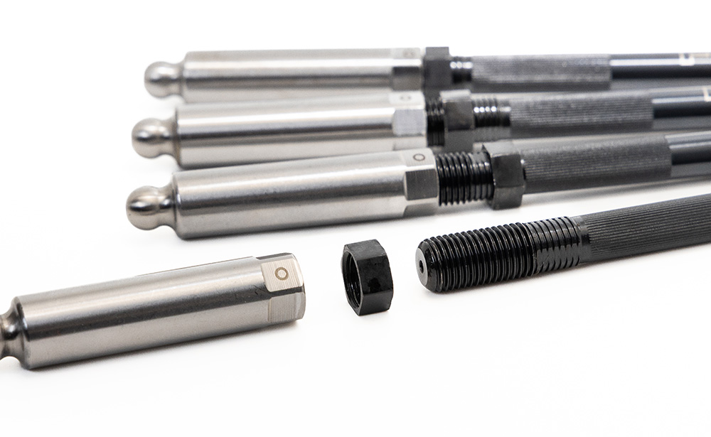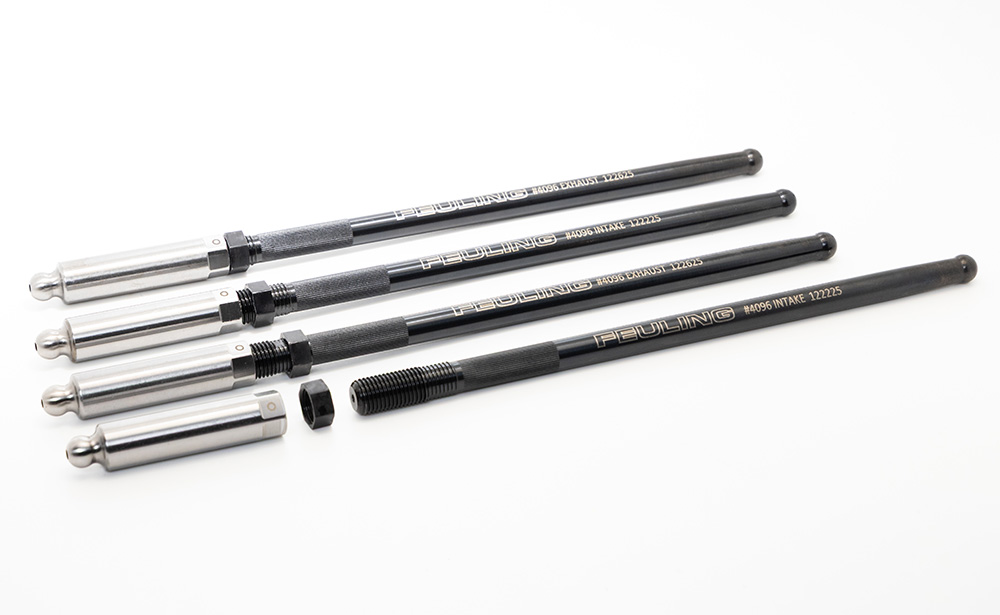• TC Quick Install Adjustable pushrods, 3/8 OD tube, 0.134 wall thickness, set of 4 pushrods. Individual length Exhaust and Intake pushrods, Install WITHOUT the removal of rocker covers, requires quick install tubes - see Feuling #4095 for tubes only or Feuling #4097 for pushrod + tube kit
