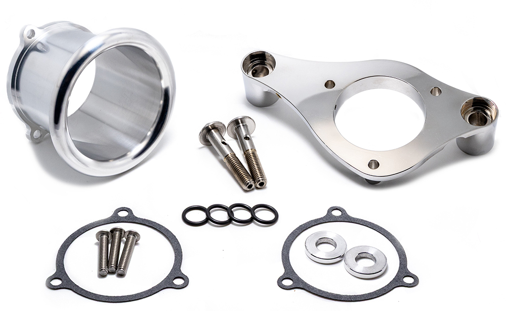 • 3 tall high flow billet aluminum velocity stack, 4 opening with internal taper down to 70mm ID. Fits Milwaukee Eight 70mm throttle body with 3 hole bolt pattern. This kit includes the backing plate and needed hardware for standard head breathers.