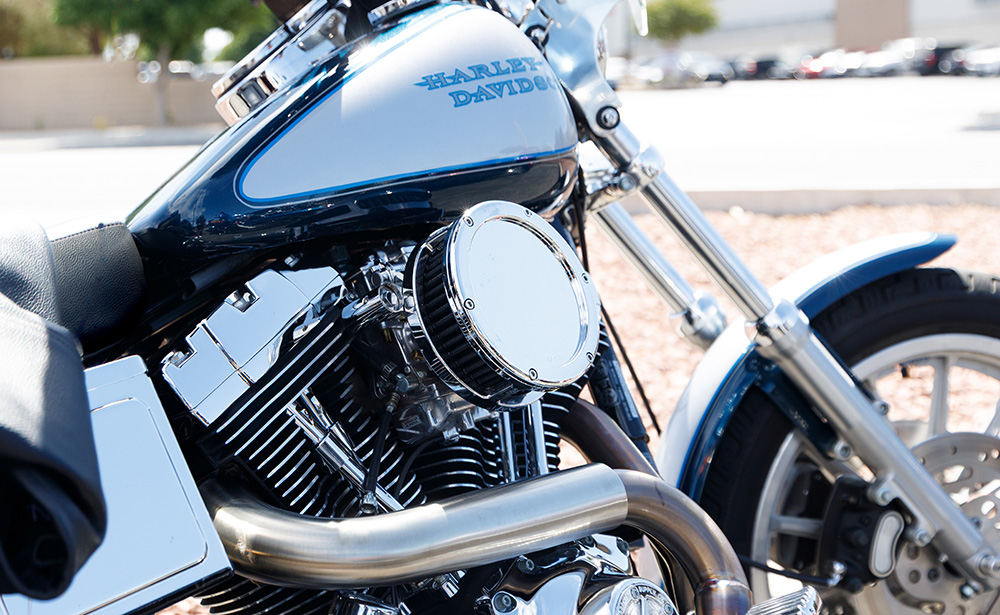 Slimmer cage to give riders more right side leg clearance, a comfort feature especially on FXRs and Dynas