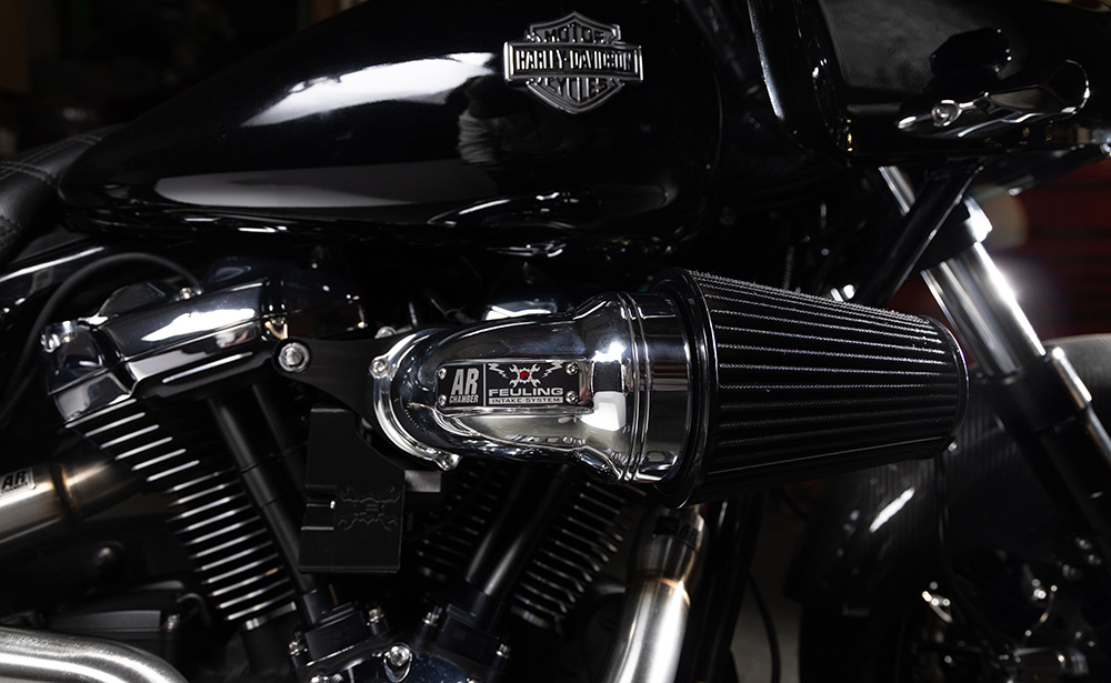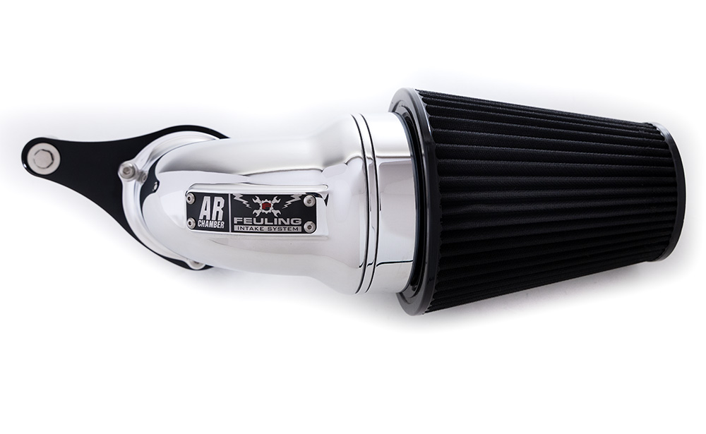 With years of experience designing improved cylinder heads, ports, combustion chambers and intake manifolds, brings light to a new bolt-on air cleaner design for Harley-Davidson motorcycles. The Feuling AR air cleaner lengthens the intake and delivers increased velocity and volume into the intake track.