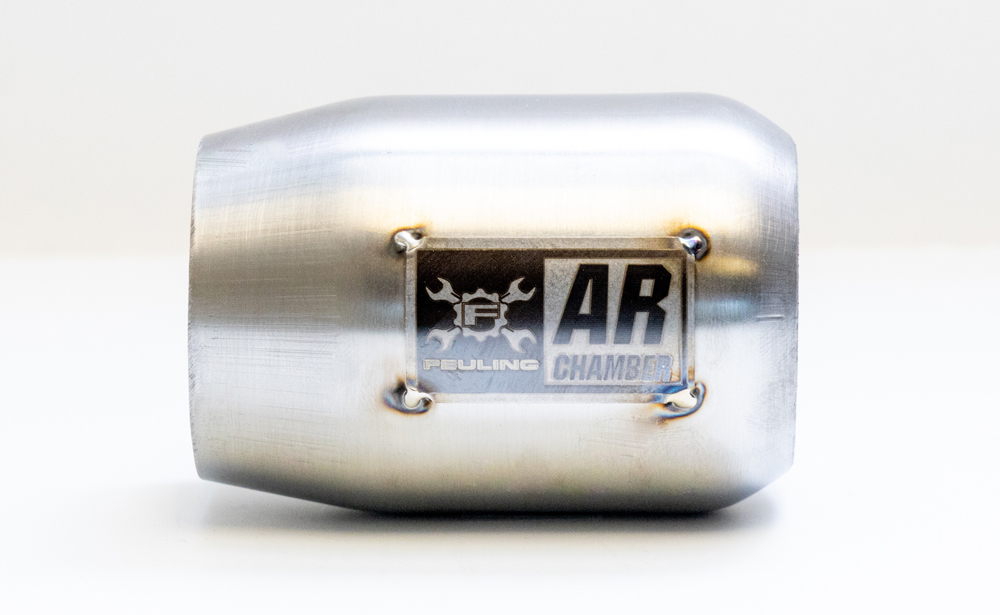 • Stainless FEULING AR (Anti-Reversion) Chamber, Inlet 1.750 > Exit 1.875. 3.250 OAL Over All Length. Brushed Finish, includes Feuling AR badge. For use with a custom made exhaust, chambers must be fabricated into a system. Sold Each Qty. 1