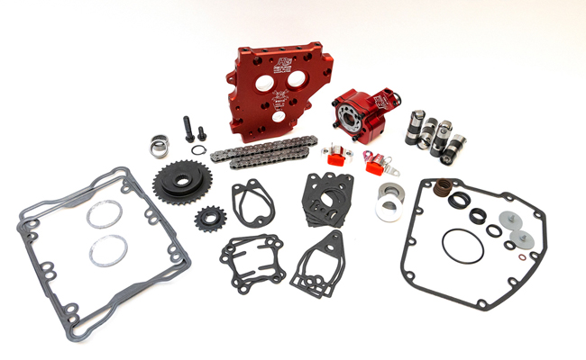 Kit includes the needed components to upgrade early 99-06 style mechanical spring tensioner cam chain drive systems to the late 07-17 hydraulic cam chain drive system using hybrid camshafts. This kit includes a FEULING RACE SERIES billet oil pump, High Flow camplate, RACE SERIES full travel Lifters, FEULINGS billet hydraulic tensioner housings, tensioner pads, cam chains, sprockets, sprocket alignment spacers, TIMKEN/FEULING bearings, needed gaskets, O-rings, ARP cam and crank hardware, Loctite and moly lube. Requires purchase of conversion style camshafts.