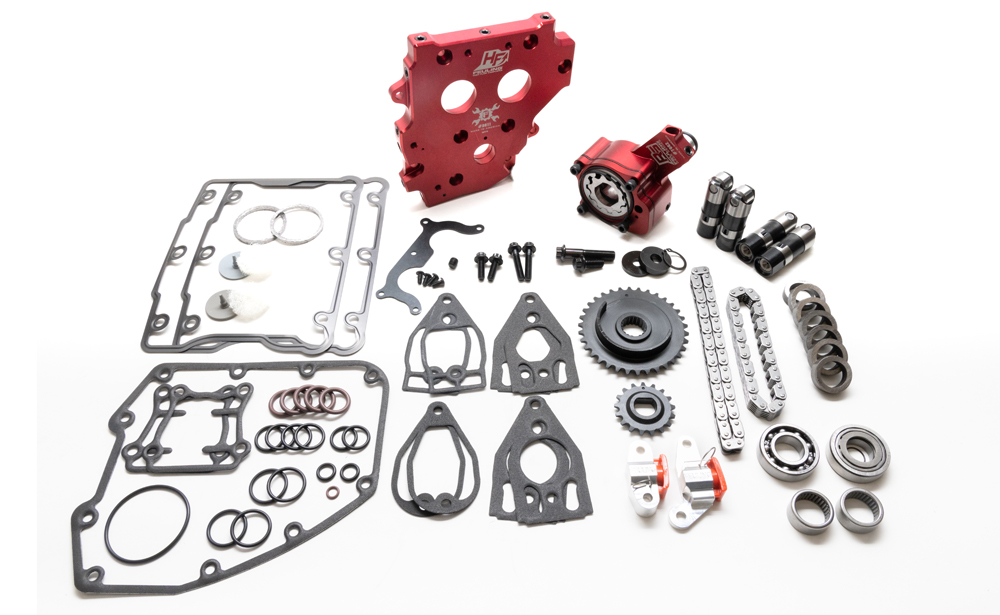 Kit includes the needed components to upgrade early 99-06 style mechanical spring tensioner cam chain drive systems to the late 07-17 hydraulic cam chain drive system using a hybrid camplate. This kit includes a FEULING RACE SERIES billet oil pump, High Flow camplate, RACE SERIES full travel lifters, FEULINGS billet hydraulic tensioner housings, tensioner pads, cam chains, sprockets, sprocket alignment spacers, TIMKEN/FEULING bearings, needed gaskets, O-rings, ARP cam and crank hardware, Loctite and moly lube.