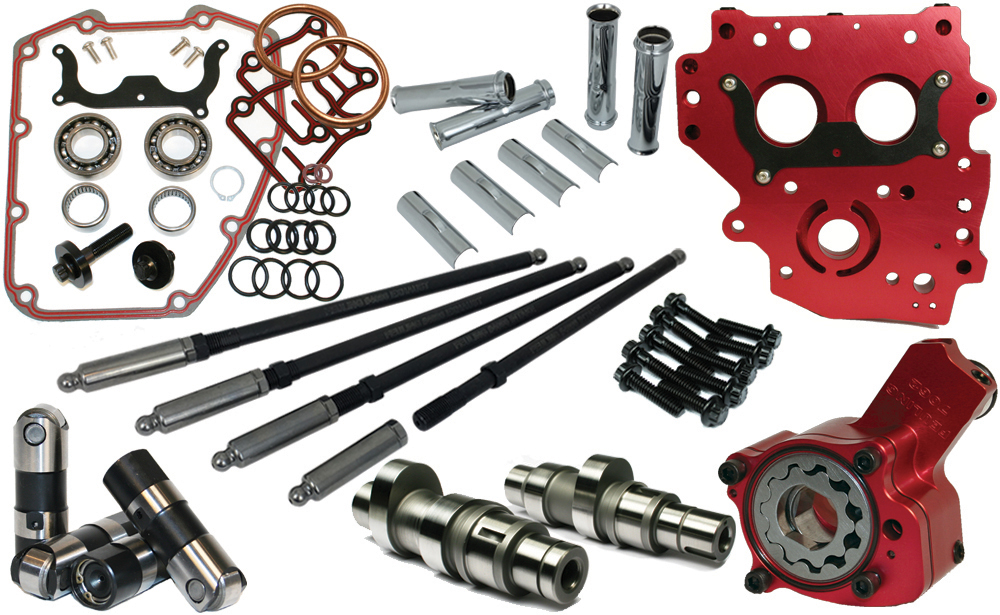 TC 99-06 Except 06 Dyna, Gear Drive, Includes 574 Reaper Camshafts #1007, Cam Install kit #2060, RACE SERIES Lifters #4017, RACE SERIES, Quick Install adjustable pushrods #4096, Chrome pushrod tubes #4095, RACE SERIES oil pump #7050, Anodized camplate #8000 and ARP Camplate/Oil Pump Fasteners #8020. Requires cam gears see S&S #33-4275