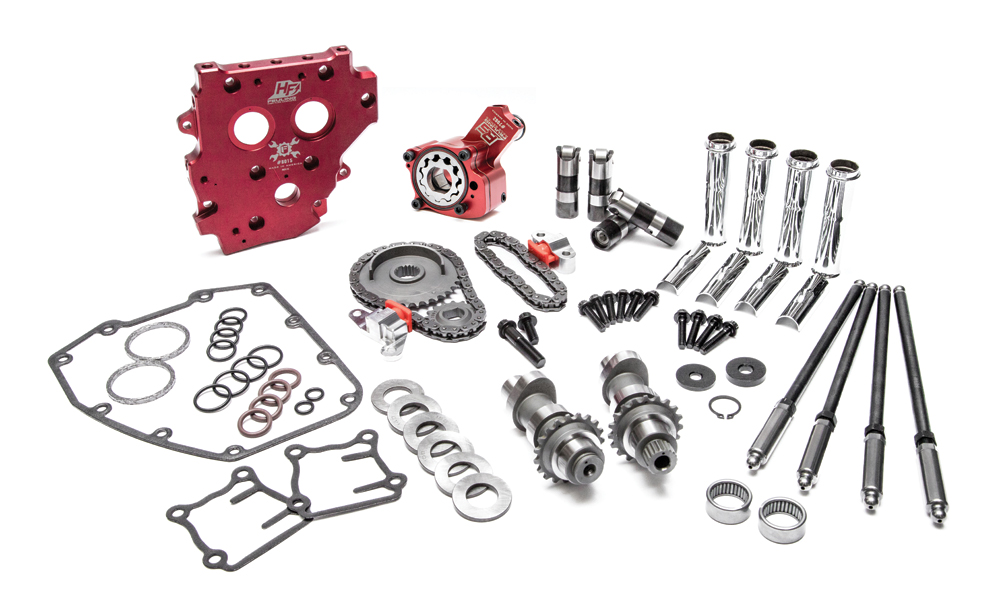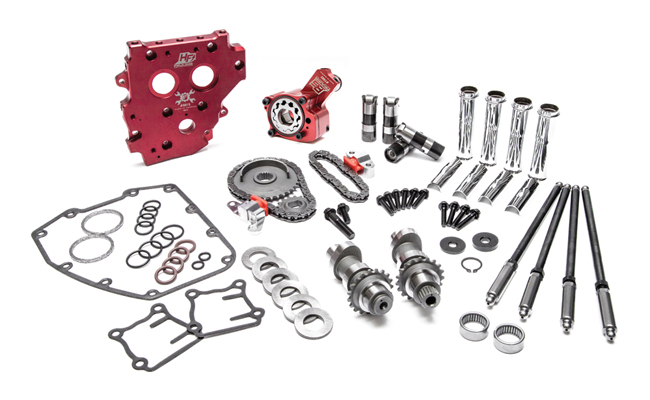 RACE SERIES Complete Conversion Camchest Kits include: FEULING RACE SERIES high volume Oil pump, high flow Camplate, REAPER Series Conversion Camshafts, RACE SERIES Short Travel hydraulic roller Lifters, QUICK install adjustable Pushrods, Chrome pushrod tubes, Hydraulic tensioners pads and housings, Sprockets, Roller chains, Cam sprocket alignment spacers, Timken Bearings, Gaskets, O-rings, Exhaust gaskets, ARP fasteners, washers, moly paste, Loctite, and hardware.