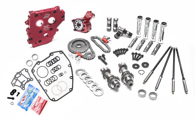RACE SERIES Complete Conversion Camchest Kits include: FEULING RACE SERIES high volume Oil pump, high flow Camplate, REAPER Series Conversion Camshafts, RACE SERIES short travel hydraulic roller Lifters, QUICK install adjustable Pushrods, Chrome pushrod tubes, Hydraulic tensioners pads and housings, Sprockets, Roller chains, Cam sprocket alignment spacers, Timken Bearings, Gaskets, O-rings, Exhaust gaskets, ARP fasteners, washers, moly paste, Loctite, and hardware.