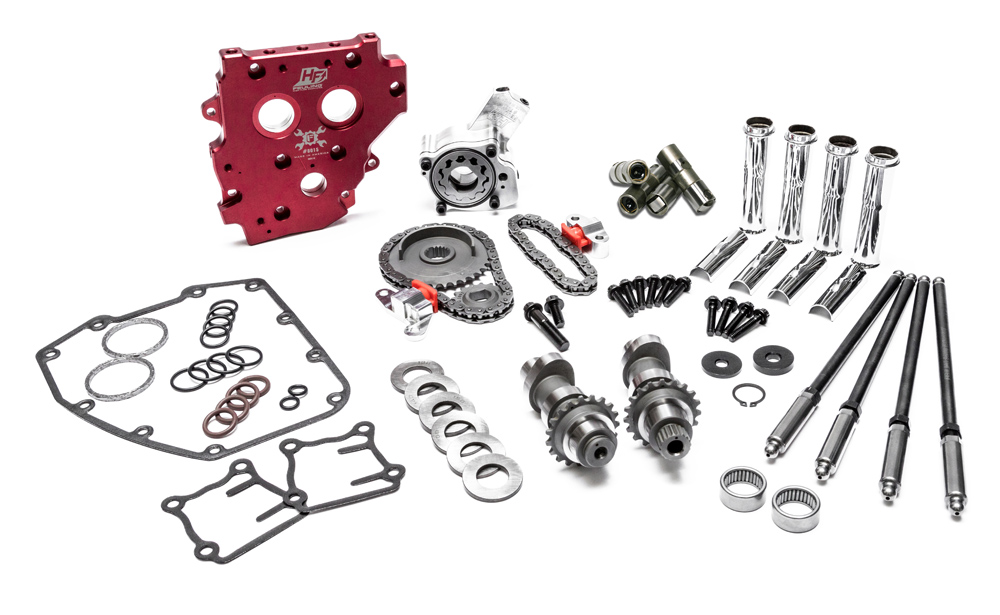 HP+ Complete Conversion Camchest Kits include: FEULING HP+ high volume Oil pump, high flow Camplate, REAPER Series Conversion Camshafts, HP+ hydraulic roller Lifters, QUICK install adjustable Pushrods, Chrome pushrod tubes, hydraulic tensioners, sprockets, roller chains, cam sprocket spacers, Timken Cam Bearings, Gaskets, O-rings, Exhaust gaskets, ARP fasteners, washers, moly paste, Loctite and hardware.