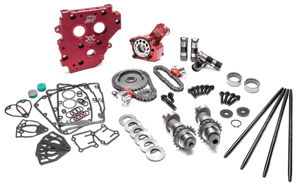 RACE SERIES Complete Conversion Camchest Kits include: FEULING RACE SERIES high volume Oil pump, high flow Camplate, REAPER Series Conversion Camshafts, RACE SERIES hydraulic roller Lifters, One Piece Pushrods, Hydraulic tensioners pads and housings, Sprockets, Roller chains, Cam sprocket alignment spacers, Timken Bearings, Gaskets, O-rings, Exhaust gaskets, ARP fasteners, washers, moly paste, Loctite, and hardware.