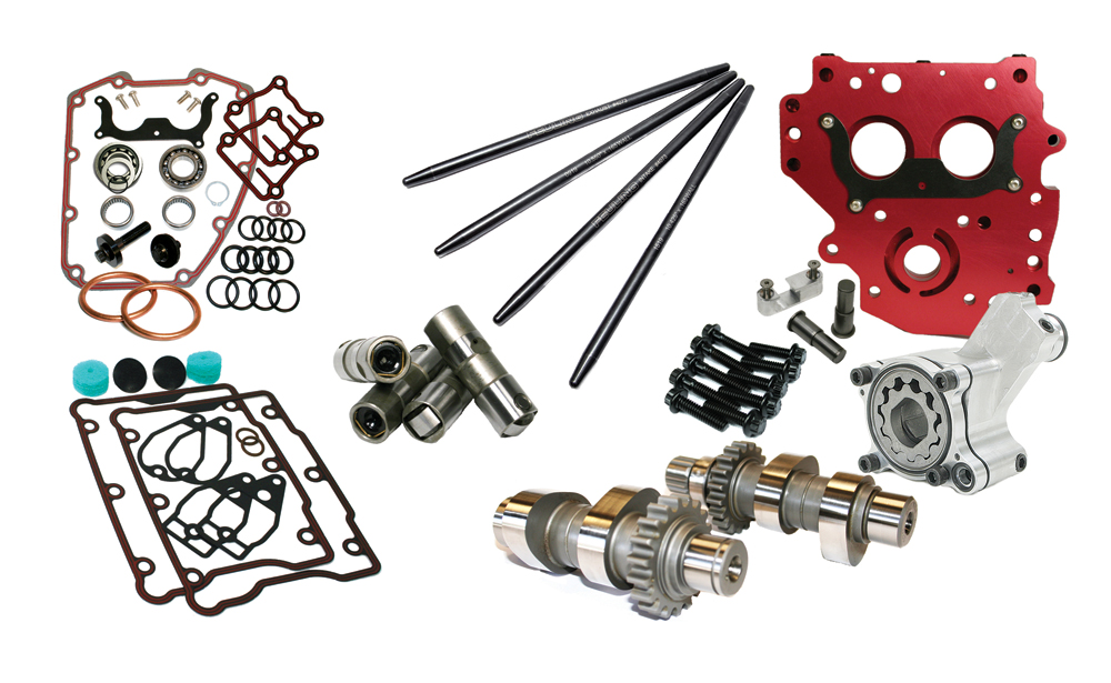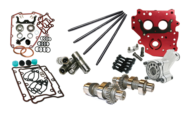TC 99-06 Except 06 Dyna, Chain Drive, Includes 543 Reaper Camshafts #1000, Cam Install kit #2059, HP+ Lifters #4000, One Piece Pushrods #4072, HP+ Oil Pump #7000, Anodized Camplate #8010 and ARP Camplate/Oil Pump Fasteners #8020. Requires cam gears.