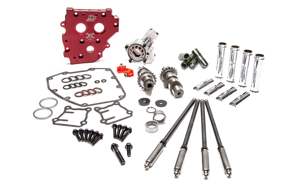 TC 07-17 Includes 06 Dyna, Chain Drive, Includes 543 Reaper Camshafts #1020, Cam Install kit #2070, HP+ Lifters #4000, Quick Install adjustable pushrods #4096, Chrome pushrod tubes #4095, HP+ Oil Pump #7060, Camplate #8015 and ARP Camplate/Oil Pump Fasteners #8020, Replacement tensioner pads #8078.