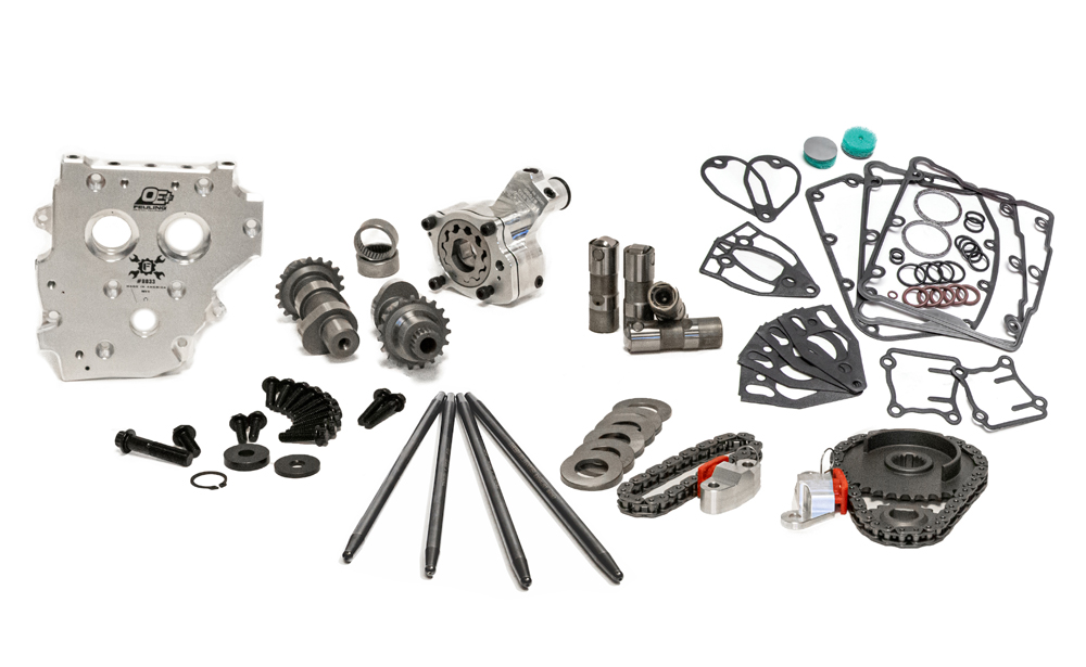 OE+ conversion complete Camchest Kits include: FEULING OE+ Oil pump, OE+ Camplate, REAPER Series Conversion Camshafts, HP+ hydraulic roller lifters, Quick install adjustable pushrods, pushrod tubes, sprockets, cam chains, sprocket spacers, Timken Bearings, Gaskets, O-rings, Exhaust gaskets, ARP fasteners, washers, moly paste, Loctite, and hardware.