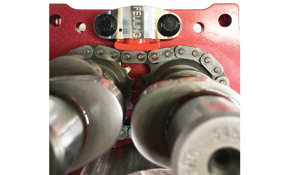 FEULING stock replacement hydraulic cam chain tensioners - MADE IN AMERICA. Tensioner housings are precision machined from billet 6061 aluminum, pads are injection molded Nylon with Teflon adder to increase wear and friction resistance. Tensioners are single piston duplicating the output pressure of stock units, FEULING tensioners include ARP 12 point chrome moly hardware.