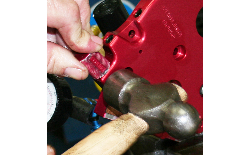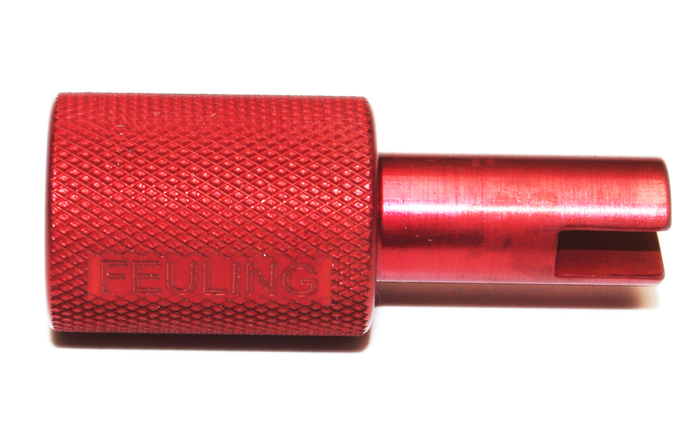 This tool easily removes and installs the roll pin which holds the pressure relief valve and spring in the camplate