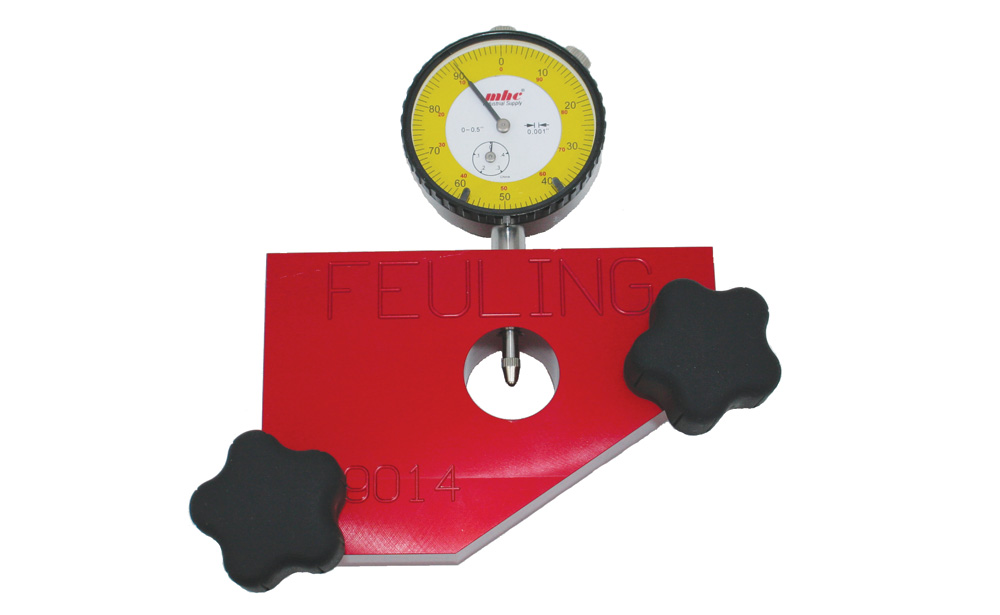 • This tool simplifies and speeds the process of checking crankshaft run out on both Milwaukee Eight model engines with the crankshaft installed. The tool mounts to the cam chest side of the engine case using the designated mounting holes of the tool combined with the handled thumb screws and the case cam cover bolt holes. The tool gives quick and accurate readings of the engines crank pinion shaft run out and makes for a great display to show and explain to customers the condition of their crankshaft.