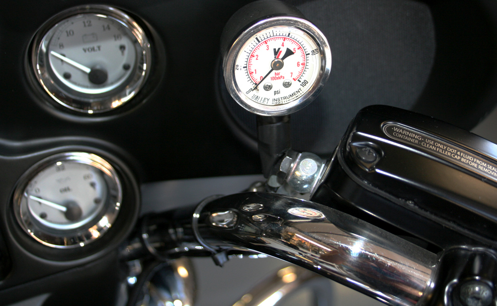 Kit includes all needed fittings to hook up on an XL, EVO, Twin Cam & M8 engines. Line is 45 OAL. Hooks up to existing oil psi ascending unit port, oil line routes up the right side frame rail, gauge fastens to the handlebars using zipeties and spacers. If a billet clamp is desired for a more permanent mount option, see gauge mounts #9050, #9051, #9052, #9053, #9055, #9056, #9057 or #9058.