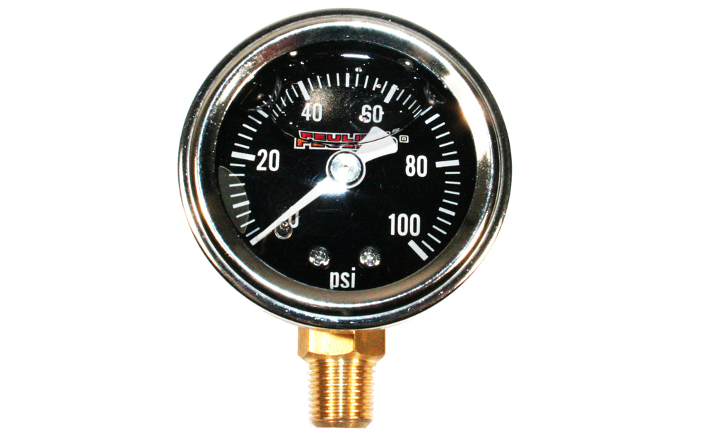 • Quality liquid Silicone filled pressure gauge 1.5 dial with 0-100 range, stainless steel case with white or black dial face, glass cover, brass 1/8 NPT male bottom or back port. Gauges with 80% liquid filled arrangement, accuracy 3-2-3%.