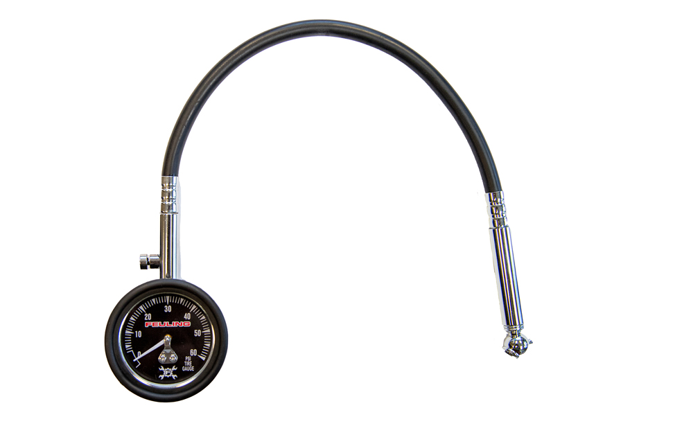 • Tire Gauge with 0-60 PSI read out for use on standard schrader valves