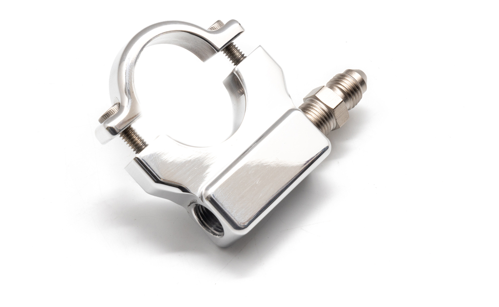 Includes billet 6061 handlebar clamp, stainless allen head bolts and 1/8 NPT to -3AN adapter fitting.