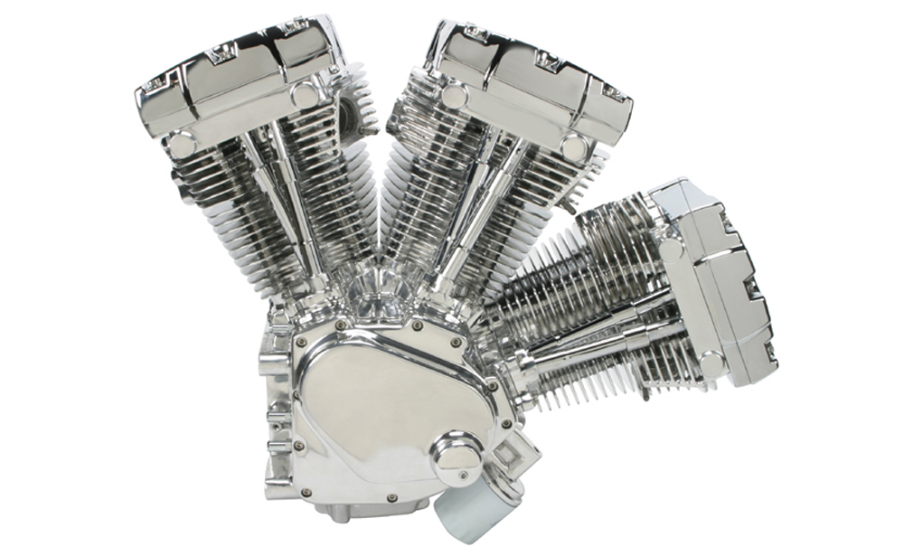 The W3 is a three cylinder W configuration engine. Air cooled, two-valve, triple gear driven cam, with a 4 bore and 4stroke creating a 150 cubic inch monster. The engine is based on the Harley Twin Cam engine with majority of its components interchangeable. The W3 uses its cubic inch to create the power thus keeping the package very reliable. The three-cylinder arrangement provides inherent smoothness firing at 90 degrees, and the low center of gravity is perfect for motorcycles.